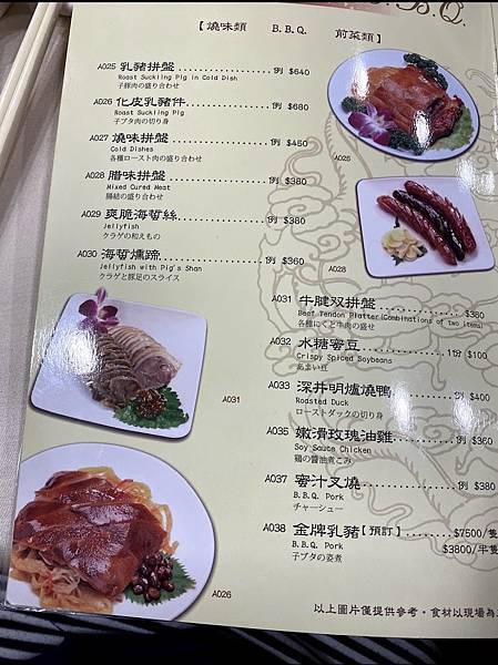 來看菜單。菜單非常多頁,琳瑯滿目。除了預訂的招牌片鴨,我最期待的,就是最後幾頁的港點,好想要吃港式點心呀!
