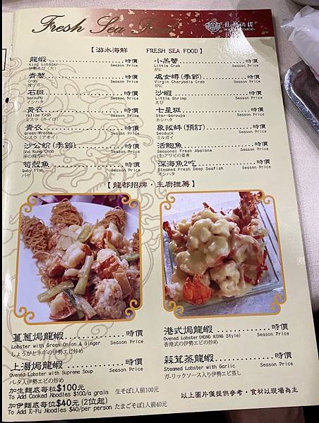 另外,港點的部分,菜單上有的,不見得一定吃得到,它有分中午場跟晚上場的港點,像晚上就沒有香滑鮮蝦腸粉。
