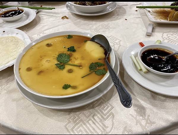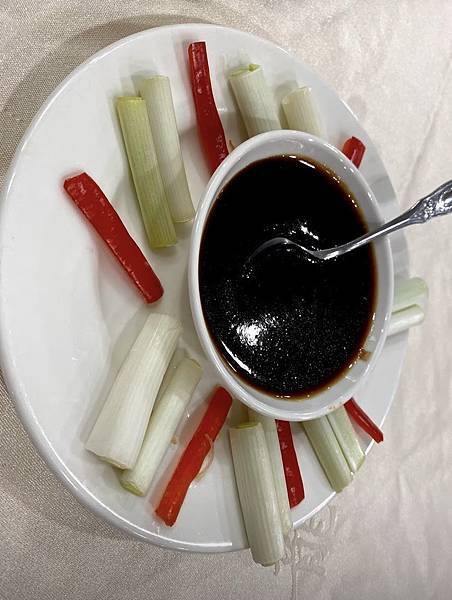 因為有預訂,所以每桌有烤鴨,會先切片讓人包著餅皮大塊朵頤,鴨皮香脆不油膩,真的好吃,也是招牌,值得一吃,要價1680。