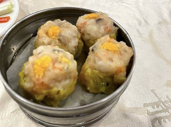 港點的部分,點了(1)燕液蝦餃黃:全家人都喜愛這分港點,蝦子甜美好吃;(2)蟹黃蒸燒賣:腥味頗重,不推。 在吃完上述食物,我們的粥還沒來,還沒來,還沒來。