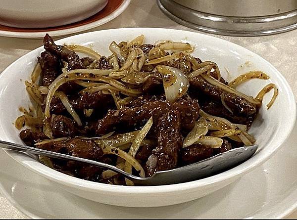 (2)黑椒汁牛仔柳條:預計要配稀飯,黑胡椒配重口味牛柳,很讓人流口水。此道食物確實如想像好吃,但沒粥、沒飯,單吃又油又鹹很不搭。而我的粥呢?