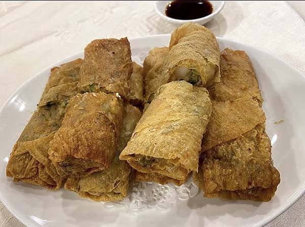 又再度加點了(1)清炒鮮蘆筍,蘆筍是粗蘆筍(我以為是細的,不是很喜歡,味道也普通)份量不大。(2)鮮蝦腐皮捲:油耗味很重,可能生意太好,沒換油吧!