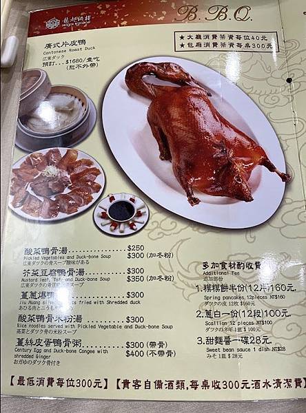 整體而言,烤鴨好吃,但價位及服務態度,要吃的人,要自己斟酌。且它有時間限制,要吃的人一定要把握時間,坐定位趕快點菜,否則一定會吃得很趕,我們這次一坐下就立刻點菜,時間到剛好用餐完畢。